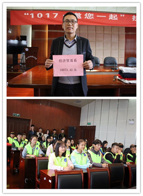 10月17日是国务院设立的“扶贫日”,为了让更多的同学了解何为扶贫,为何扶贫,把“扶贫”一词,确实的融入到我们的生活中去,2017年10月18日三点我院在综合楼11楼报告厅,举行“1017,邀您一起”扶贫捐赠仪式,经贸系参加此次捐赠仪式。