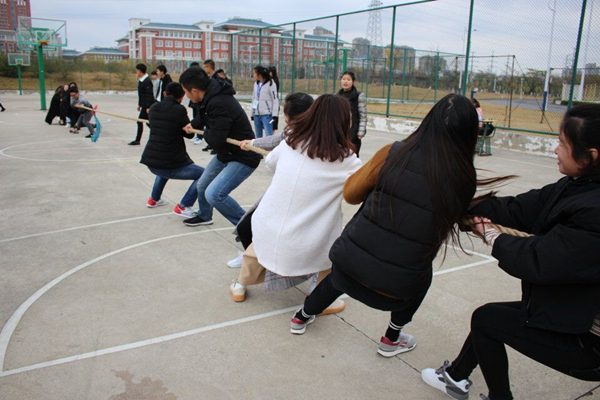 随着比赛哨声的响起,队员们一起高呼着“一二,一二”,双手紧握长绳,憋足了劲拼命往后拉。号子声、呐喊声,此起彼伏,飘荡在整个篮球场上空。经过激烈的耐力和体力较量,最终,17级工商企业管理班获得一等奖,17级旅管一班获得二等奖,17级会计三班获得三等奖。
