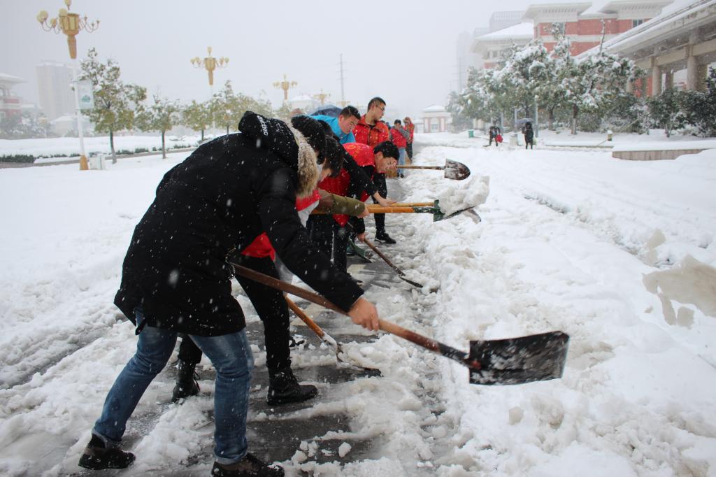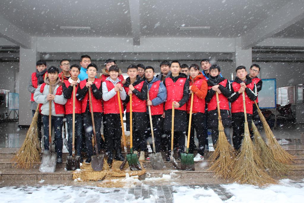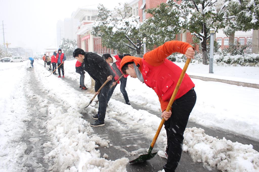 今日,滁州市迎来强降雪天气,各处银装素裹,但也因积雪使得路面变得泥泞湿滑,严重影响师生出行,为了师生安全和出行方便,1月4日中午,经贸系组织团学干开展志愿除雪行动。
