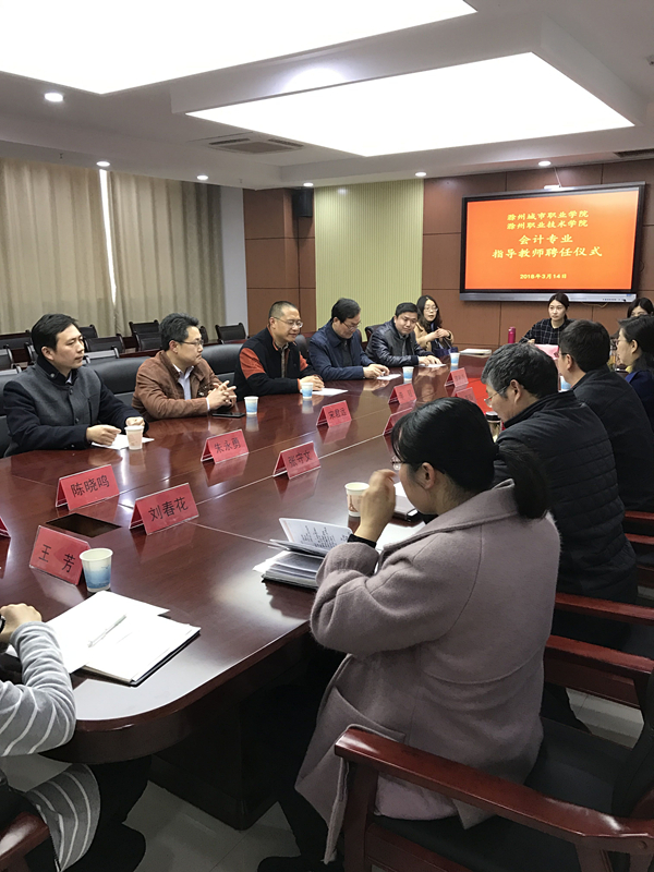 滁州城市职业学院党委副书记牛春雨、组织人事处处长徐云川、管理系党政负责人以及会计专业带头人与受聘会计教师共同出席了聘任仪式。牛春雨代表滁州城市职业学院对我院经贸系会计专业教师应邀受聘为城市学院会计专业教师作出指导表示衷心感谢和热烈欢迎。我院朱永勇副教授代表学院受聘指导教师作表态发言,他表示一定会按照两校专业合作要求,与被指导教师做好联系与沟通,共同学习、共商教法,切实履行好指导教师的责任,推进两校会计专业教师素质共同提高。滁州城市职业学院当场宣读了聘任名单,并为受聘指导教师颁发了聘书。城市学院管理系主任陈素霞、被指导教师代表分别作了发言。