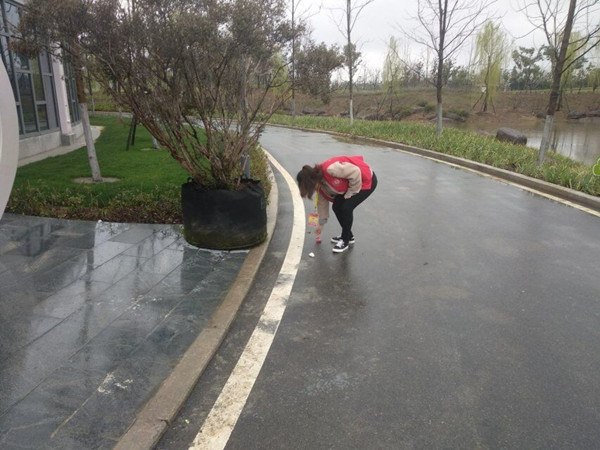 活动开始前,同学们有秩序乘坐公交并组织参与的同学保持文明礼仪。花博园悄然多了一群穿红马甲的人,这些由经贸学子组成的“红马甲”,有的帮助游客指引方位、有的帮助每个询问方位的游客指路、有的捡起破换环境的垃圾。分散花博园的各个角落,流动巡查,劝导文明。