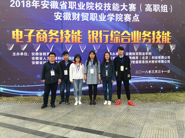 2018年安徽职业院校技能大赛(高职组)电子商务赛项比赛于3月31日在安徽财贸职业技术学院(合肥)隆重举行。由我院经贸系刘会珍、丁伟老师指导,由2016级电子商务专业的汪传洋、张思想、潘筱宇和王思佳四名同学组成的代表队在比赛中获得安徽电子商务技能大赛二等奖。