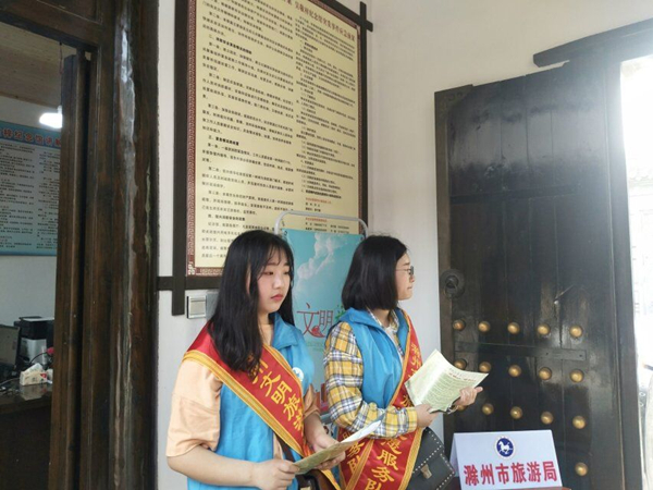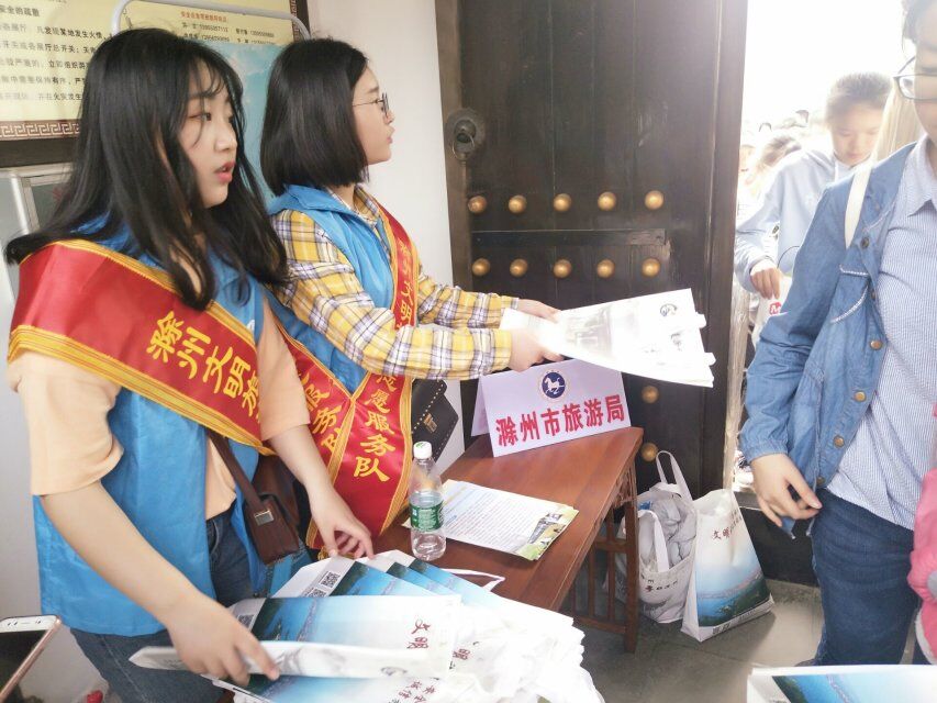 活动开始,志愿者们向旅客们发放《滁州市旅游交通图》、《旅游安全宣传手册》、《旅游突发事件应急手册》、《文明旅游出行指南》等宣传资料,号召旅客通过自身示范和倡导文明旅游主张,塑造旅客的崭新形象。活动期间,志愿者们维护秩序、劝导旅客文明游玩,为旅客提供旅游指南、咨询等相关志愿服务内容,积极为旅客排忧解难。