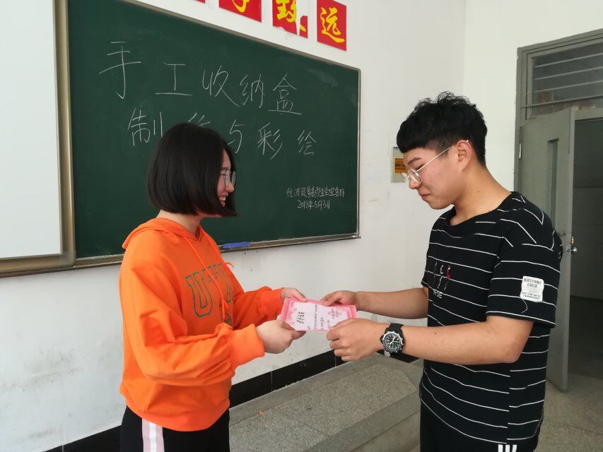 手工制作要求参赛者们利用日常生活中最常见的纸盒、硬纸板等为手工材料,以简单的裁剪、折叠、粘贴为辅助手段,可以用颜料彩绘在手工盒上,自行发挥,大胆创新,主旨鲜明,形成具有时代性、知识性、趣味性、教育性的独特手工自制作品。比赛过程中同学们大胆的发挥自己的想法,做出自己想象中的盒子。最终,17级旅游管理二班廖苏林获得一等奖、17级电子商务四班孙雨获得二等奖、17级会计六班章婉获得三等奖。