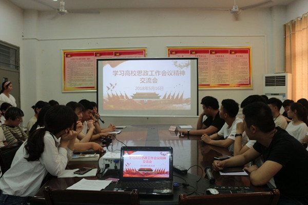 为了学习贯彻落实全国高校思想政治工作会议精神,进一步加强和改进学校思想政治工作,明确大学生思政工作的重大意义。经济贸易系团总支于5月17日中午在1320教室召开了学习高校思政工作会议精神交流会,积极组织各班班长、团支书参加了此次活动。
