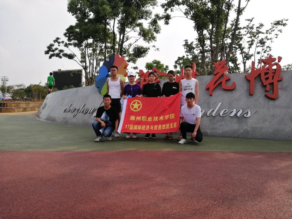 2018年6月16日下午四点,17国际经济与贸易团支部全体班委成员于女生宿舍一号楼下集合,乘坐四路公交车前往滁州市花博园开展此次的暑期社会实践之“美丽滁州你我知”问卷调查活动。