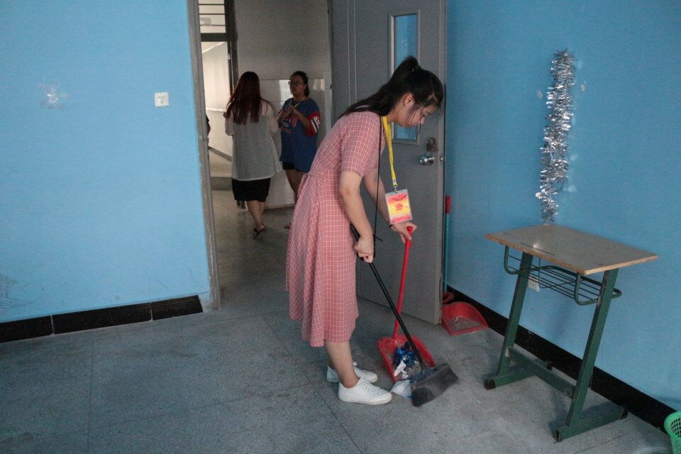 经过了两个月的暑假,加上假期当中一直有工人对教室进行装修,很多装修材料、破损的办公、学生桌椅堆放比较零乱,装修后留下的垃圾也比较多,但在活动过程中,同学们热情洋溢的进行大扫除活动,并对每个班级的桌椅板凳进行检查是否损坏并上报。此次大扫除结束以后在经贸系一楼合影留念。