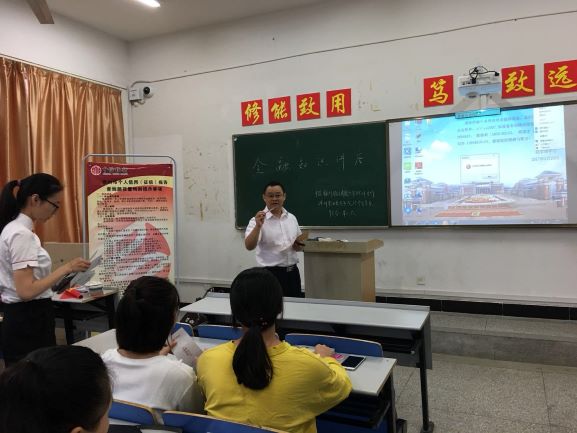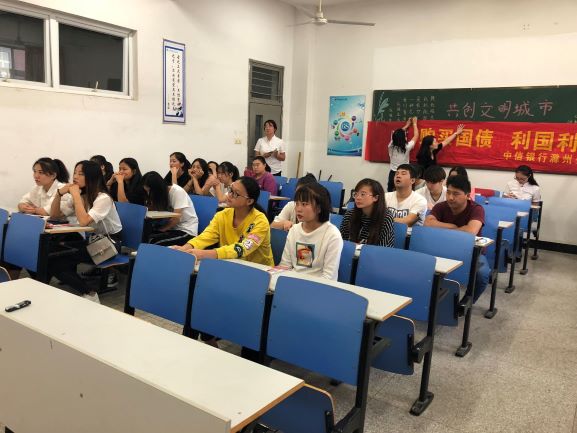 9月14日下午三点,由中信银行股份有限公司滁州分公司和我系投资理财专业共同举办的“货币识别知识讲座进校园活动”在1525教室展开。