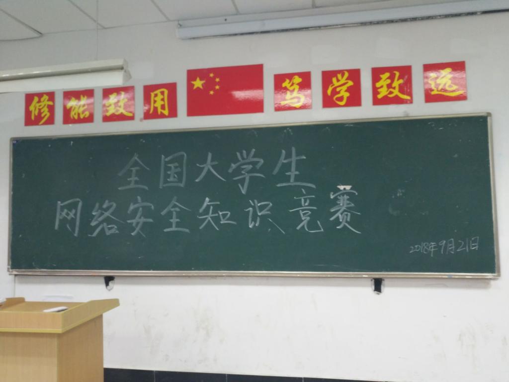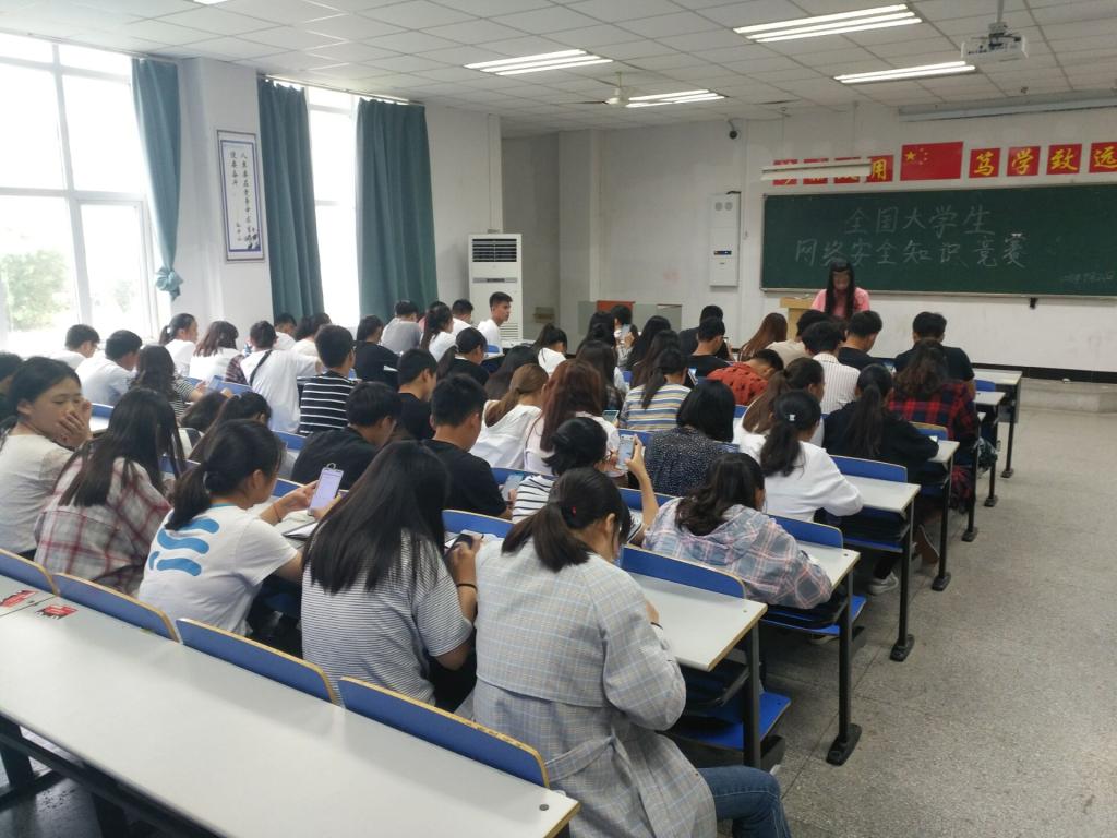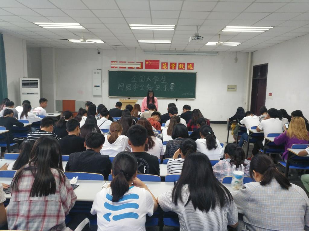为贯彻落实习近平总书记在全国网络安全和信息化工作会议上的重要讲话精神,经贸系团总支于2018年9月21号11:40经贸楼1102教室开展全国大学生网络安全知识竞赛。