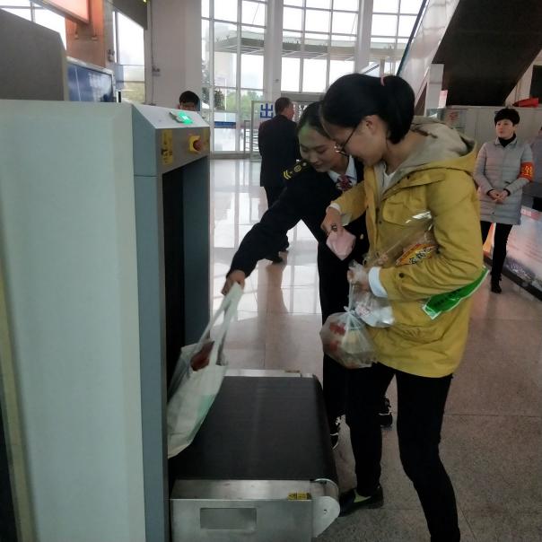 同学们在滁州北站参加志愿者活动,了解站内的工作内容,负责站内的二次安检、引导以及检票入站等相关工作。
