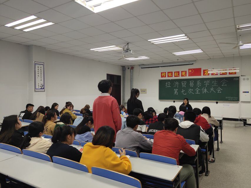 为提高学生会干事们的工作能力及工作效率,更好地为我系学生服务,加强学生会各部门之间的合作交流,互相进步。4月8日,经贸系学生会在1101教室召开“第七次全体大会”,学生会全体成员参加此次会议。