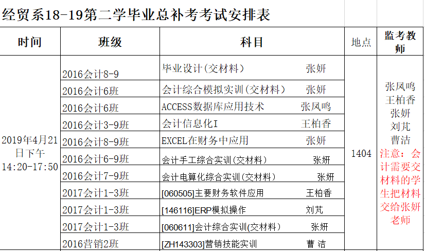经贸系18-19届第二学期总补考考试安排
