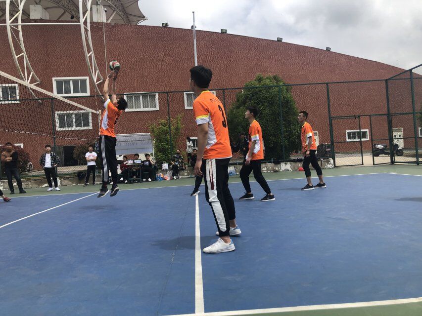 为丰富大学生的业余生活,培养同学之间的团结合作能力,4月30日中午在排球场举行男子排球比赛,此次比赛经贸系对战机电系。