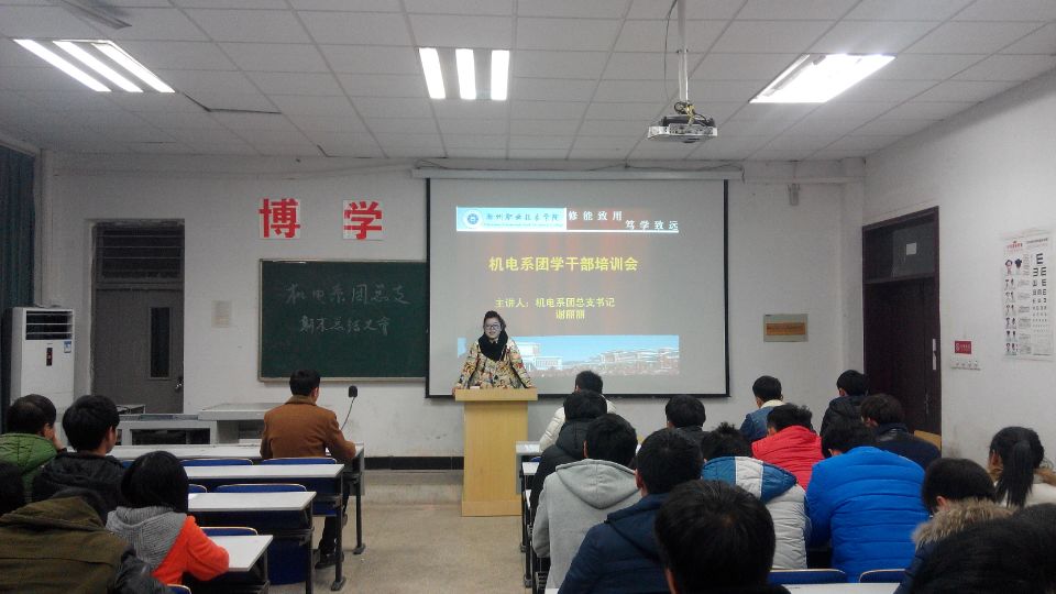 1月7号下午4点由beat365中国唯一官方网站机电工程系团总支开展期末学习总结大会。在5102教室顺利举行,本次大会上,机电工程系团总支负责人谢丽丽老师出席了此次总结大会,同时参加此次活动的还有团总支、学生会、系部所属社团以及机电系各团支部成员。