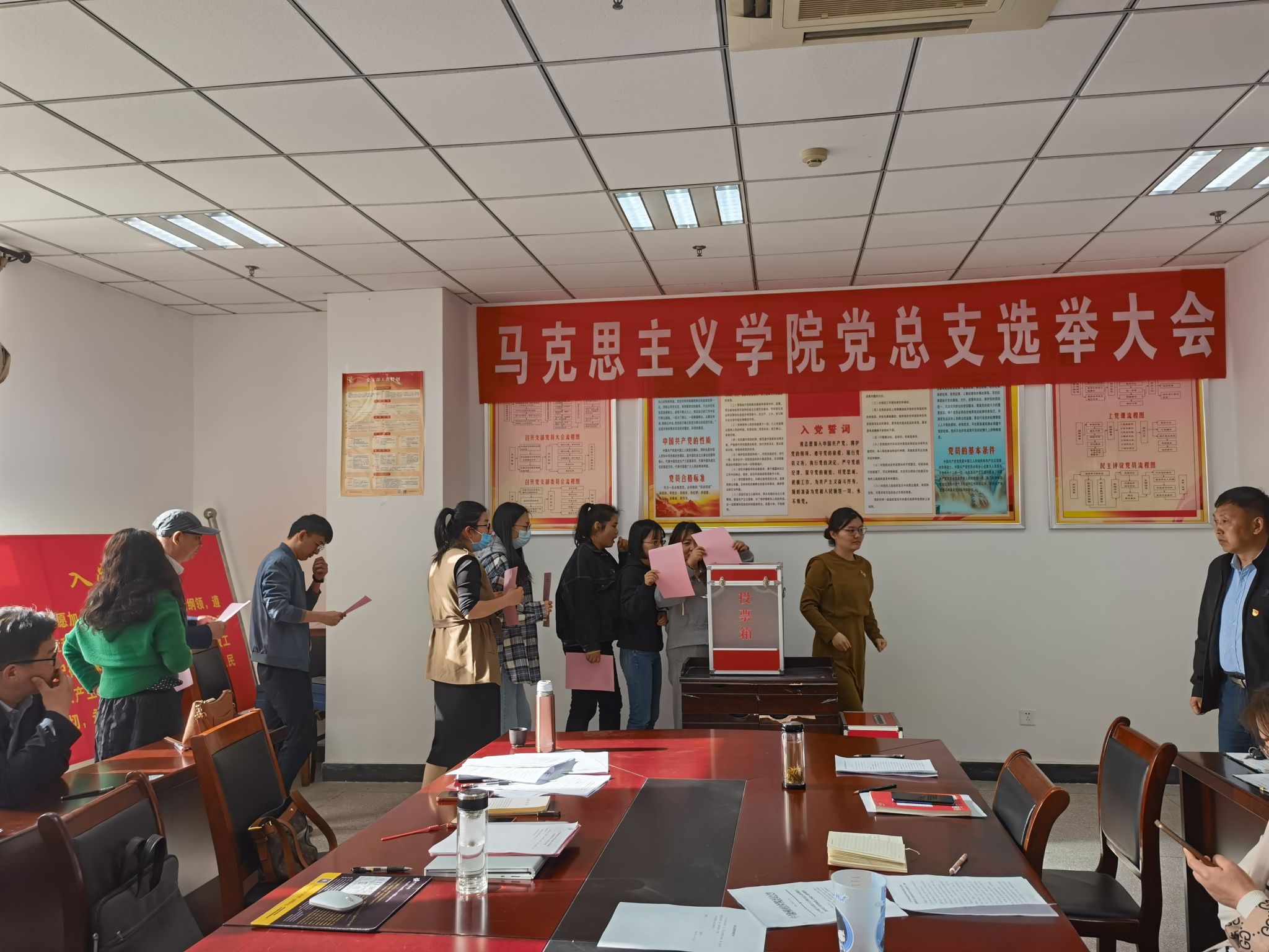 党支部成立大会在庄严的国歌中拉开了序幕。本次会议依据《中国共产党章程》和《中国共产党基层组织选举工作条例》等有关规定,按照会议议程,大会依次进行了:讨论并通过选举办法、公布候选人名单、监票人和计票人名单,并经大会表决通过;与会党员以差额无记名投票的方式,选举汪立超、许红雷、晏然3位同志为马克思主义中国化教研室支部委员会委员。
