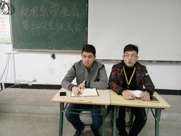 2016年11月25日 中午,机电系学生会第三次全体大会在5102教室召开。出席本次大会的有机电系学生会主席王旭、李峰及各部门的部长和大一干事们。