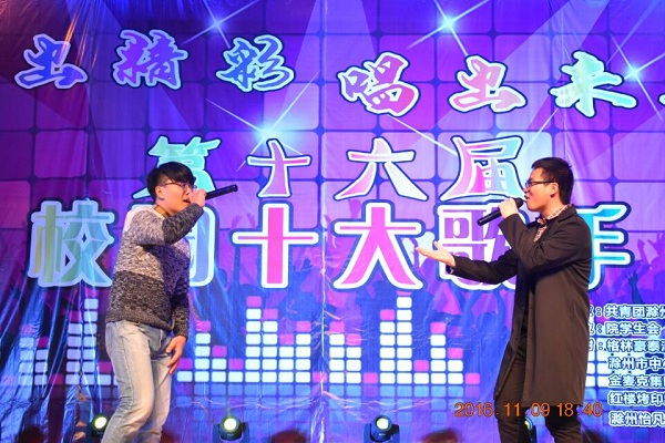 为提高同学们的综合素质,丰富同学们的课余生活,11月9号,院学生会举办的一年一度的校园十大歌手决赛在院大礼堂隆重举行!机电系14级范明杰、16级茆安同时挺近决赛。