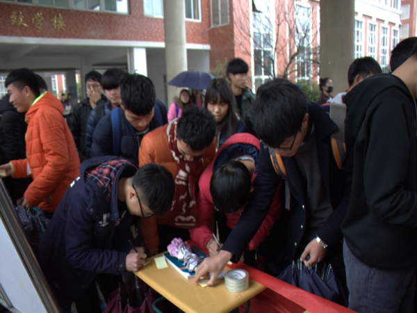 为了让同学们铭记历史的伤痕,明确自己肩上的责任和历史重担。12月13日,第三个国家公祭日,机电系团总支于教学楼大厅举办了爱国标语的征集行动。