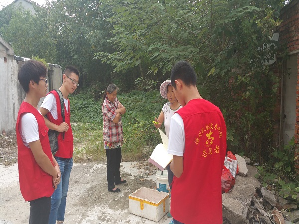 为了磨练大学生意志,促进大学生综合素质的提高,2016年8月17日,机电系15机电(1)班社会实践小分队前往滁州市南谯区戴家小村,进行了以“绿色同行”为主题的调研。
