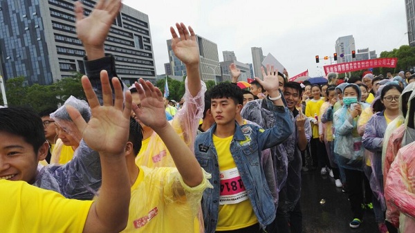 天公不作美,比赛当天下起了大雨,可尽管如此,比赛现场的人员们还是热情洋溢、激情四射。随着一声枪响,比赛正式开始,现场一片哗然,我系参赛人员加入到涌动的比赛人流当中,在比赛的过程中虽然下起了倾盆大雨,但依然阻挡不了我系参赛人员的步伐,他们一替一个在前面领跑,在疲惫中相互鼓励,同心协力共同跑完了全程。