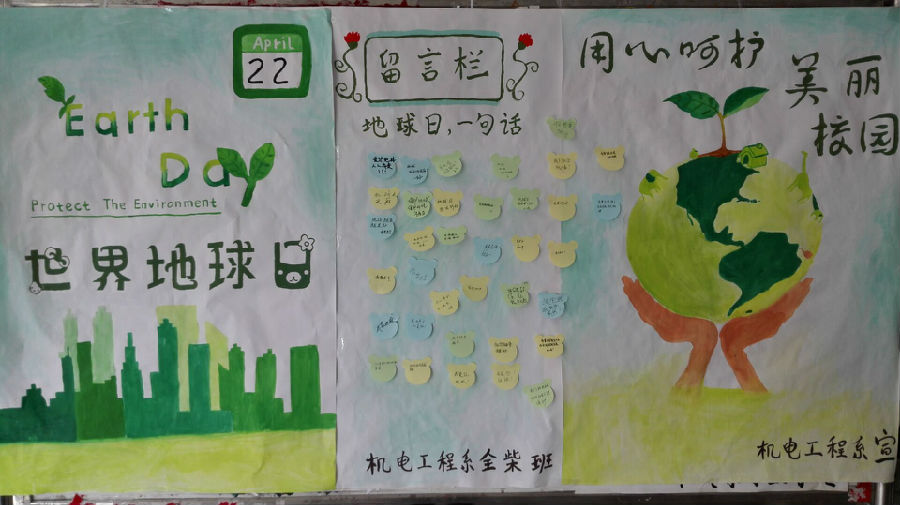 经过充分的前期准备工作,我系系全柴班的学生于早晨6:00在1号宿舍楼门口正式举行此次活动。活动过程中,全柴班同学们号召路过的学生在标有“世界地球日,用心呵护美丽校园”的红色条幅上签名,然后在小卡片上写上地球日的祝福语,贴在活动海报上。本次活动开展很顺利,365官网学生都积极参与,让365官网学生们更近一步了解了环保的重要性,增强了学生们的环保意识。