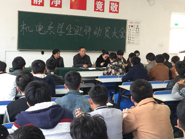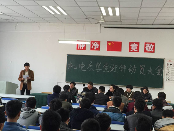 为充分调动全系同学积极响应迎评促建工作的主观能动性,大力营造“人人了解评估,人人关注评估,人人参与评估,人人得益评估”的氛围。机电系于2015年4月8日中午在北阶102教室召开了迎评促建动员大会。我系党总支书记晋太洋、全体辅导员和学生会干部、各班级班干出席了此次大会。