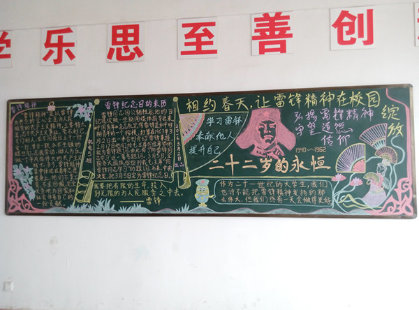 同学们把对雷锋同志的尊敬和怀念之情投入到了黑板报的创作之中,板报全面的介绍了雷锋全心全意为人民服务的精神,使同学们体会到了雷锋精神的真正含义。最终,15机电(5)班在本次评比中获得桂冠。