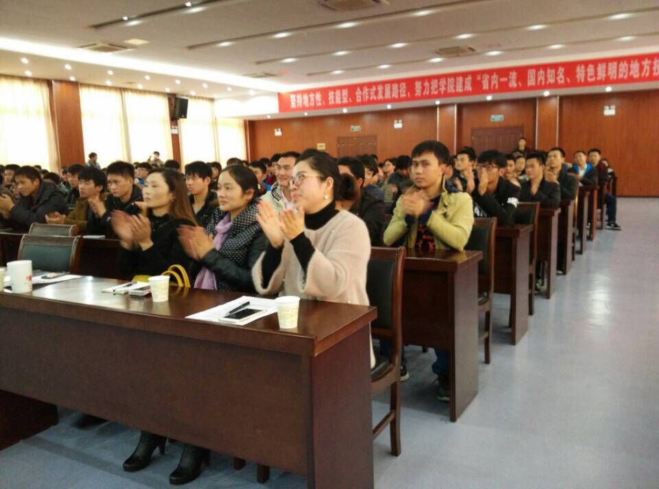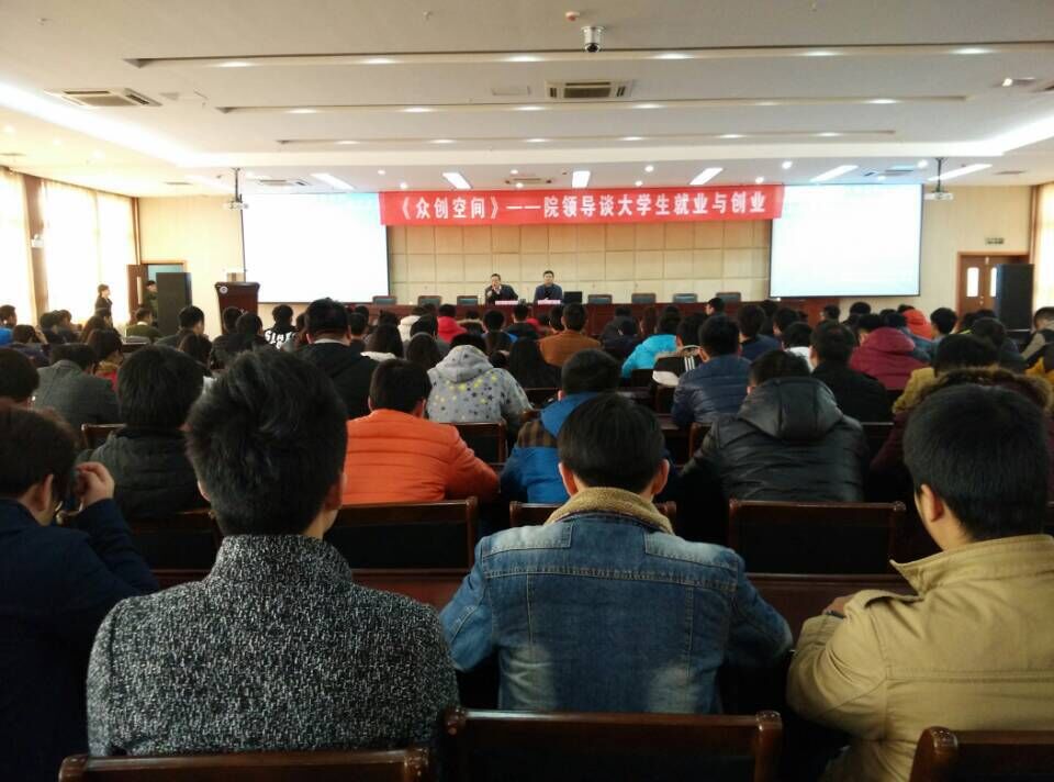 2015122日下午,由机电工程系、地方高职院校创新创业教育名师工作室联合主办的《众创空间》在我院综合楼5楼报告厅举行。院长助理、招生就业处处长、全国首席职业指导师穆松应邀为广大师生做了《院领导谈大学生就业与创业》的主题报告。活动由机电系党总支书记晋太洋主持地方高职院校创新创业教育名师工作室成员谢丽丽、朱兰芳、冯早红老师出席本次活动机电系16届毕业生、大学生创业中心、职业发展协会成员参加了本次活动