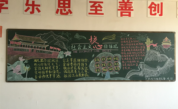 通过这次黑板报的展出,不仅美化了教室,更让同学们对社会主义核心价值观有了更加全面深入的认识,也希望我们在今后的学习、生活以及其他社会活动中能积极践行社会主义核心价值观。