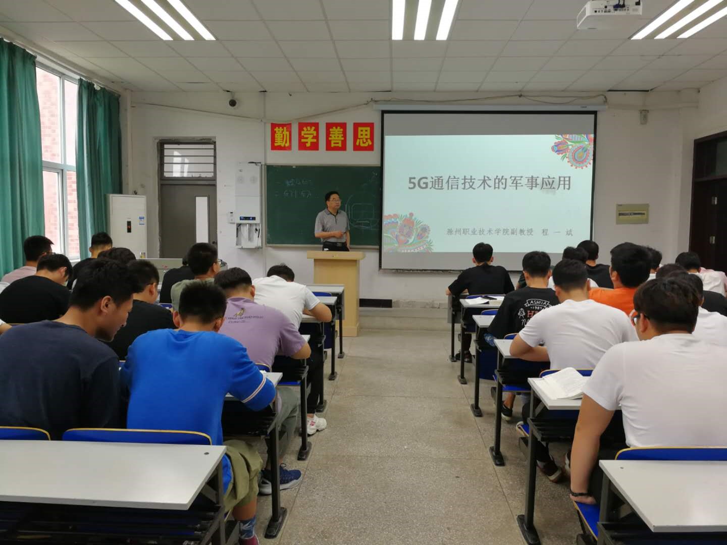 2019年6月19日上午,beat365中国唯一官方网站副教授程一斌同志为机电工程系作“5G通信技术在军事方面的应用”学术讲座。他重点介绍了5G在军事观察、定向、决策、行动环节中的应用,包括战场感知、数据处理、情报融合、指挥控制、精确打击、综合保障、效能评估等内容,以及5G通信技术对未来战争的影响。该讲座进一步拓展了同学们对5G技术发展与应用的认识和视野,同时也是一堂生动的国防教育课。