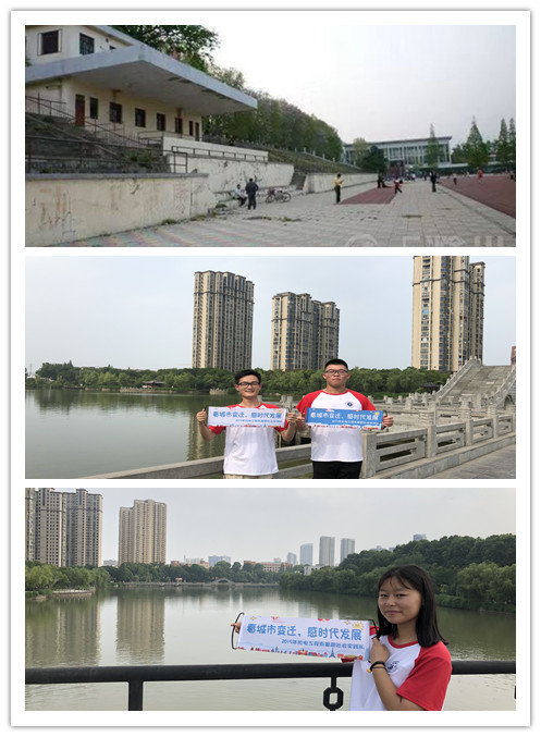 隔天,实践小分队根据老滁城的旧照片沿路寻访,与实地进行了对比。从四牌楼出发,走过南湖公园、天长路、滁州站、琅琊山、高杆灯……又来到城南新区,一座座高楼耸立,大型公益性公园花博园是市民休闲娱乐新去处、高铁站为市民提供便捷等。通过实地与旧照片的对比,实践队的成员们深切感受到了滁州市的新风、新貌、新变化,看到了改革开放以来的巨变。