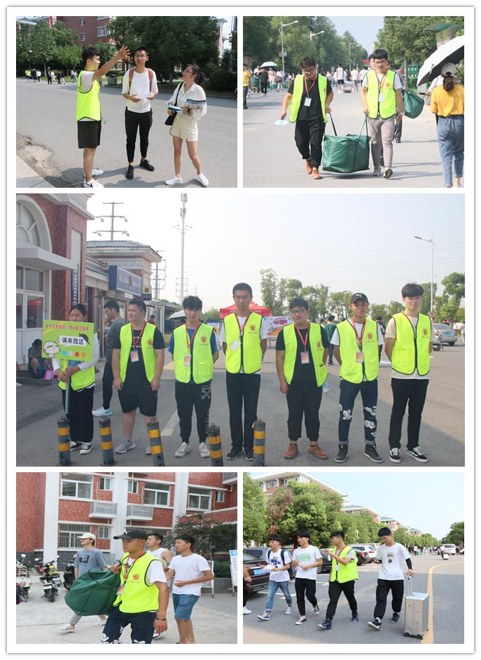 为确保迎新工作有序、顺利进行,在此之前,我院党总支书记晋太洋组织召开迎新工作部署会,制定了迎新工作方案,并对参加迎新的教师和学生进行培训。9月7日早上7点,我院所有迎新工作人员以良好的精神面貌在自己的岗位上等待2019级新生的到来。院领导在现场协调新生接待工作,并与家长亲切交谈,询问新生家庭情况,勉励新生入学后好好学习,用优良的成绩回报家长和社会;辅导员们耐心为新生办理入学手续,解困答疑;我院“迎新志愿服务队”顶着烈阳、不辞辛苦、热情体贴的去迎接每一位新同学的到来,从校门口到报名处、注册处,再到寝室,处处涌动着他们忙碌的身影,拉皮箱、搬被褥等,成为校园里最美的“一抹绿”。