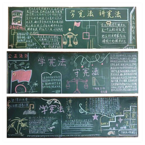 各班级的黑板报版面图文并茂,字迹工整,勾勒出浓浓的普法精神,营造良好的学习宪法氛围,达到宣传、教育的目的。通过绘制宪法主题黑板报,让同学们认识到学习宪法的重要性,增强我院师生的“学法、用法、守法、护法”的意识,共同构建平安、和谐校园。