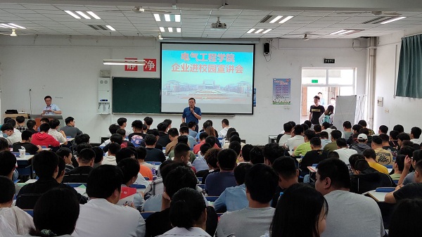 为了做好2021届毕业生就业顶岗实习就业指导,提升学生技能,加深行业认识。电气工程学院于9月25日下午在北阶102教室举行2021届毕业班企业校园招聘宣讲会,宣讲会邀请了滁州隆基乐叶光伏科技有限公司和滁州博西华电器有限公司,我院党总支书记晋太洋主持会议,18级全体学生参加。
