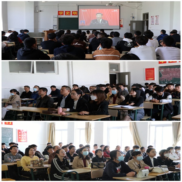上午9点半,我院全体教职工和团学青年陆续地走进教室就坐,以饱满的精神状态安静地等待党的二十大开幕会直播。随着国歌的响起,党的二十大正式开幕。在观看过程中,全体教职工和团学青年聚精会神,认真聆听报告,并做好会议记录。大会中习近平总书记指出,中国共产党第二十次全国代表大会,是在全党全国各族人民迈上全面建设社会主义现代化国家新征程、向第二个百年奋斗目标进军的关键时刻召开的一次十分重要的大会。并指出要高举中国特色社会主义伟大旗帜,全面贯彻习近平新时代中国特色社会主义思想,弘扬伟大建党精神,自信自强、守正创新、踔厉奋发、勇毅前行,为全面建设社会主义现代化国家、全面推进中华民族伟大复兴而团结奋斗。大会结束后,我院教职工代表冯巧红老师、学生代表钟国庆、张文龙分别分享大会心得感悟,要积极学习党的二十大精神,不负青春、不负韶华,只争朝夕、努力奋斗。