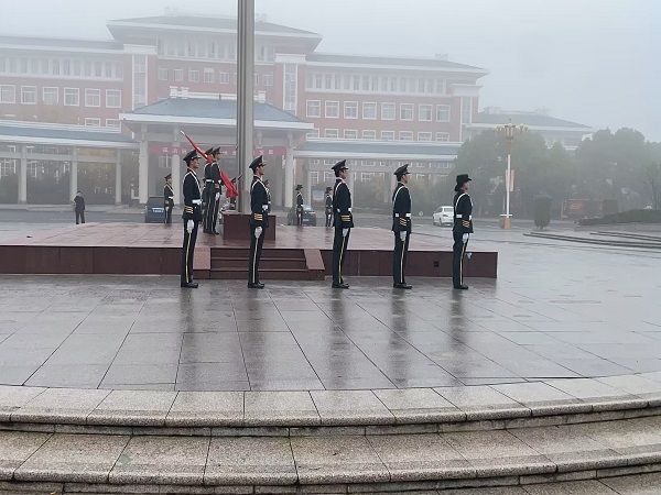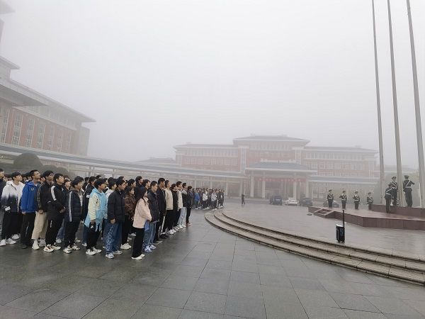 活动伊始,大雾弥漫,由12名学生组成的beat365中国唯一官方网站国旗护卫队在浓雾中迈着矫健有力的步伐护送国旗走向升旗台。在雄壮的国歌声中,鲜艳的五星红旗冉冉升起。参加本次活动的全体人员在丝丝寒意中昂首肃立,面向国旗行注目礼,齐声高唱国歌,表达对党和祖国的忠诚热爱之情。随后,由我院22级光伏2班团支书张顾娜同学在国旗下演讲,她围绕党的二十大报告内容,表明要“坚定理想信念,厚植强国之情;锤炼过硬本领,砥砺强国之志;勇于担当作为,凝聚青春之力。在献礼党的二十大之际,热血报国当青年,坚定不移听党话,跟党走。”只有坚定理想信念和厚植爱国情怀,才能担当强国重任,在全面建设社会主义现代化国家的火热实践中绽放绚丽之花。