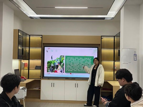 此次主题团日活动共分为两部分进行。第一部分,由团总支副书记以PPT的形式,从清明节的文化简介、清明诗词、传统习俗和活动方案四个部分生动形象地讲述了清明节的历史背景,使同学们更好地了解清明节的传统风俗和丰富内涵。第二部分,团总支副书记向各班团支书分享了围绕清明节多种多样的活动形式,同学们积极参与讨论,为开展清明活动提出自己见解。最后微课在同学们积极弘扬先进文化、继承革命文化的良好氛围中圆满结束。