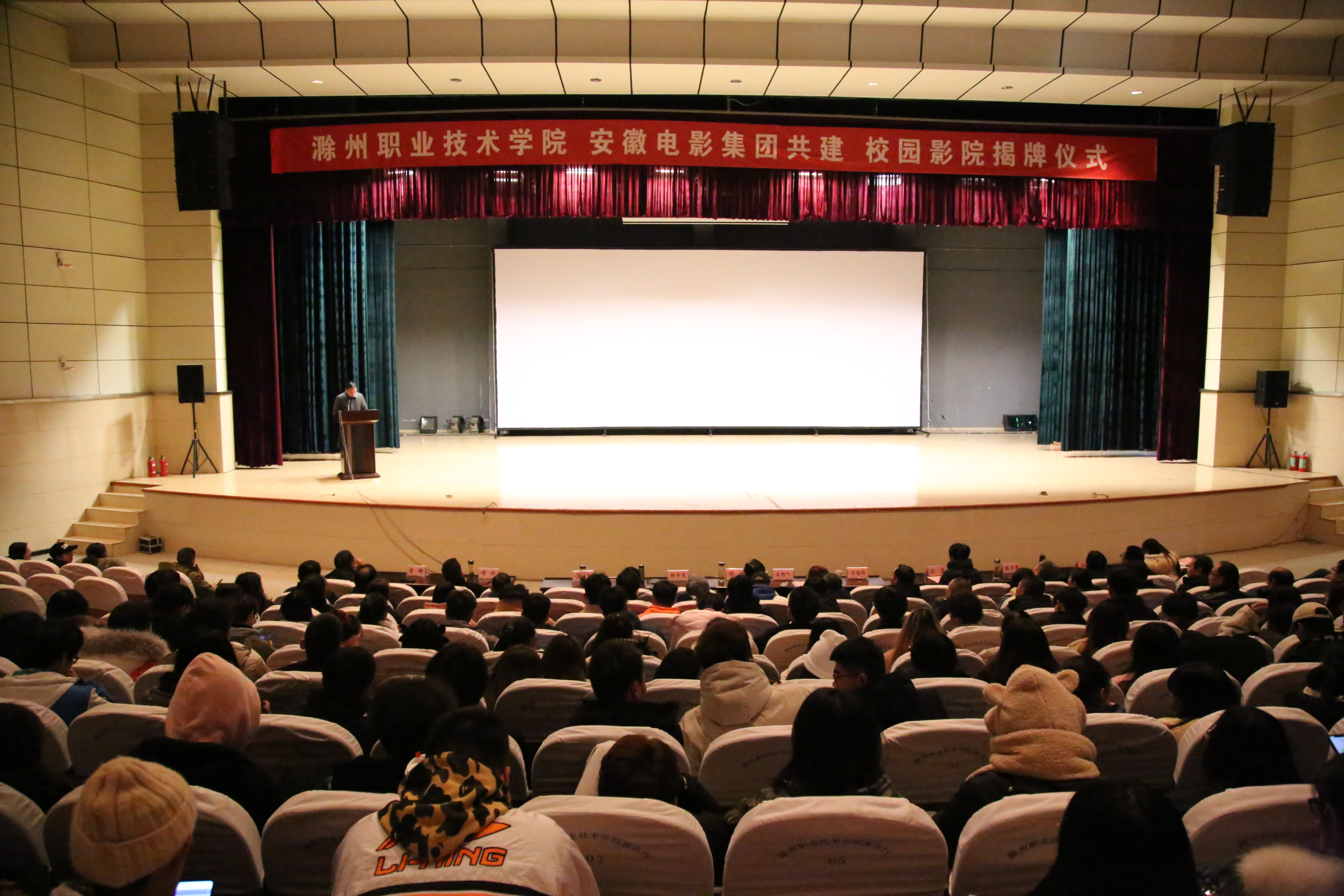仪式上,校党委委员、副校长江洁代表学校对校园影院揭牌首映表示热烈的祝贺,向支持建设校园影院的安徽广电集团和安徽电影集团表示衷心的感谢。江洁指出,此次365官网和安徽电影集团共建校园影院,是学习贯彻习近平新时代中国特色社会主义思想和习近平总书记关于教育重要论述精神的重要举措,是深入贯彻落实全国全省高校思想政治工作会议精神,深化社会主义核心价值观教育和中国梦宣传教育的重要载体,是加强师生思想政治教育、素质拓展和艺术教育的重要途径。校园影院将致力于推动影视文化与高校实践育人环节的深度融合,积极打造思政教育、爱国主义教育新阵地和服务学生成长、丰富校园文化生活的实践平台,将有利于进一步发挥影视艺术对广大师生思想引领和价值导航的作用,推动校园文化不断丰富发展,实现以文化人、以文育人目的。