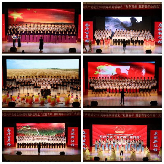 各参赛队伍别出心裁,在合唱的基础上配以舞蹈、朗诵、情景再现等表演形式,让现场高潮迭起,使在场师生们真切感受到共产党一百周年光辉灿烂的奋斗历程。互联网学院、传媒与设计学院在第一篇章带来的《八月桂花遍地开》、《映山红》等歌曲描绘出了中国共产党在建党初期历经沧桑而从容不迫的光辉历程,带领师生们回到了那个艰苦奋斗的岁月;商学院、食品与环境工程学院以及信息工程学院在第二篇章带来的《保卫黄河》、《军民大生产》等歌曲则再现了中国共产党在抗日救亡这种内忧外患的背景下领导创建了以国共合作为核心的抗日民族统一战线的场景,用歌声书写出党领导下的抗日斗争;建筑工程学院、管理学院以及机械与汽车工程学院在第三篇章带来的《没有共产党就没有新中国》、《我的祖国》等歌曲诉说出没有共产党就没有新中国,中国共产党是历史和人民的选择,更加坚定青年学子对党的忠诚拥护;滁州技师学院、交通运输学院以及电气工程学院在第四篇章带来的《春天的故事》、《走进新时代》等歌曲则描绘出了改革开放后中国的腾飞,带领师生领略祖国发展的辉煌岁月,号召广大奋斗者们开创更精彩的未来。最后,在滁州职院合唱团带来的《我和我的祖国》的歌声中,比赛圆满落幕。
