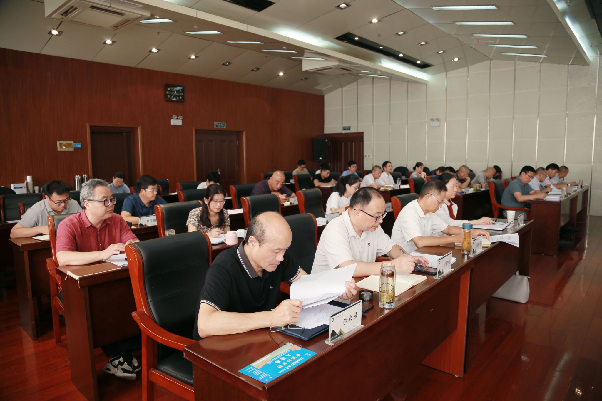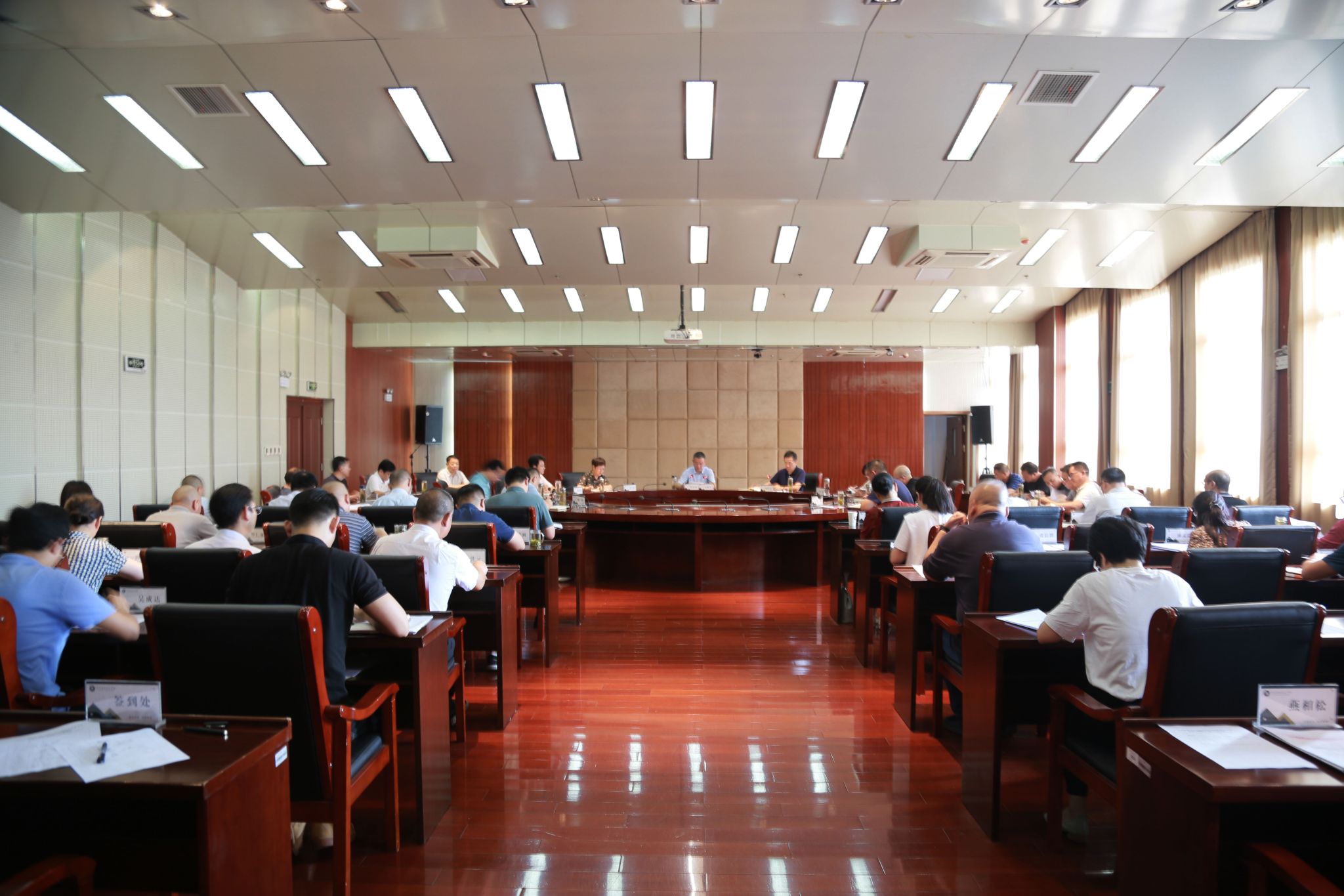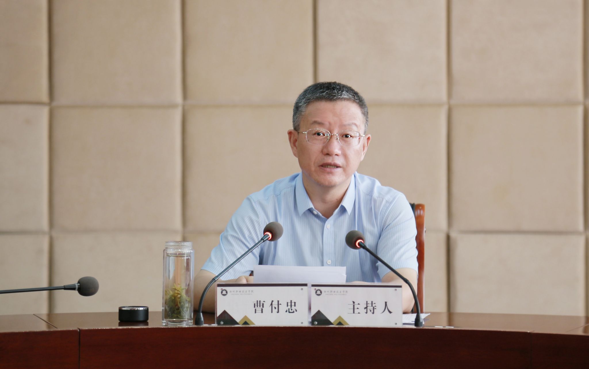 9月18日下午,学校在综合楼1102会议室召开学习贯彻习近平新时代中国特色社会主义思想主题教育动员大会,校党委书记曹付忠主持会议并讲话。校党委副书记杨家庆、校领导江洁、孙静、苏有良、胡凼、李平权、李超、穆松,各教学院部、各部门党政主要负责同志出席会议。