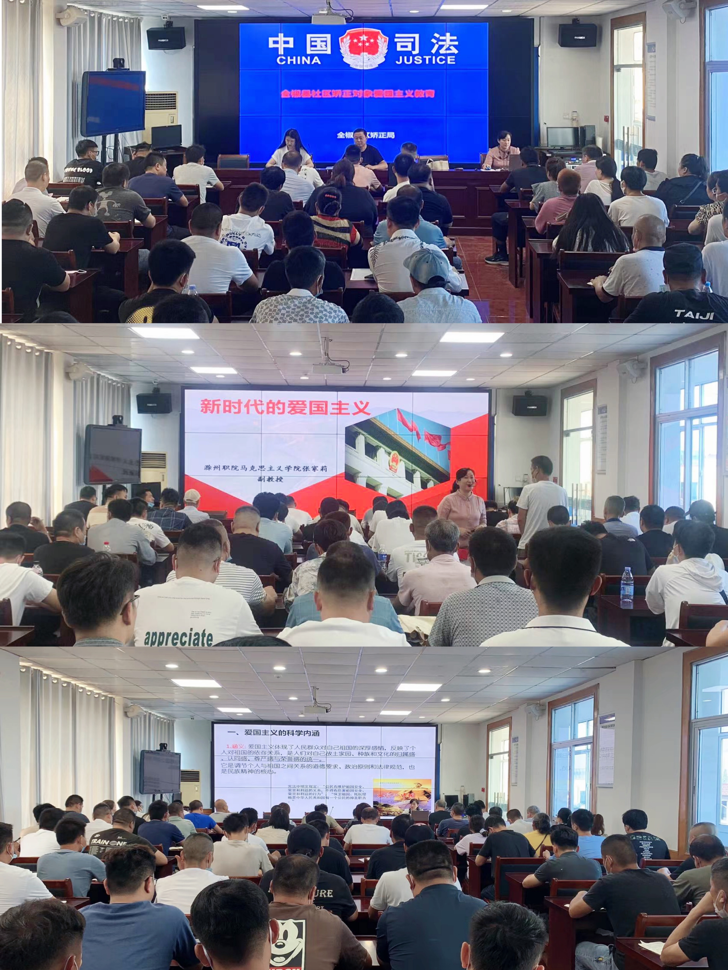 社区矫正中心主要负责对判处管制、宣告缓刑、裁定假释、决定或批准暂予监外执行的罪犯实施监督管理、教育矫治和社会适应性帮扶。三场讲座,张家莉老师分别以“新时代爱国主义的内涵和要求”、“传统文化中的民族精神”和“中国梦和中国精神”为题展开。讲座从社会关注的台湾热点问题为切入点,系统阐述了新时代爱国主义的科学内涵、基本要求和时代价值;解析了新时代爱国与爱党、爱社会主义制度的内在一致性;指明了当代公民做新时代忠诚的爱国者的实践要求。同时,讲座让司法矫正人员们理解了文化的软实力作用,以及中华民族能够在5000多年的历史长河中生生不息、薪火相传,很重要的一个原因,就是拥有孕育于中华民族悠久辉煌历史文化之中的伟大的民族精神;理解了中国梦的内涵和“两个十五年的”战略安排;理解了民族复兴的中国梦必须弘扬中国精神,即以爱国主义为核心的民族精神和以改革创新为核心的时代精神;提升了司法矫正人员的对党的大政方针的认识水平,增强了他们积极投入社会,服务社会,实现人生价值,创造美好幸福人生的信心。