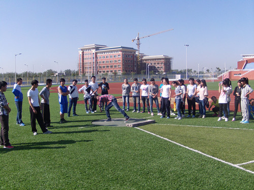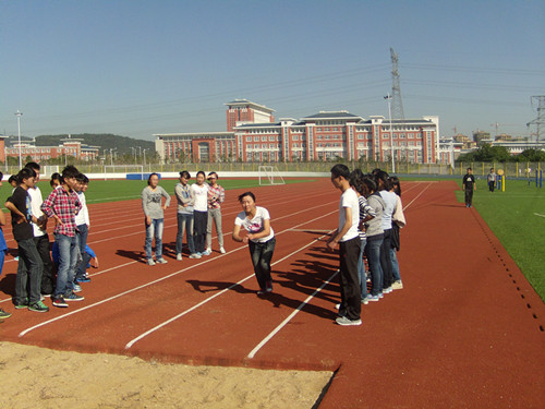 2013年10月13日上午,即将参赛的运动员们自愿放弃周日休息时间,一大早来到学院体育场开始训练。 选手们在训练中找感觉,练技术,恢复体力,加强体能,希望能以最好的竞技状态在校运会上一展雄姿。