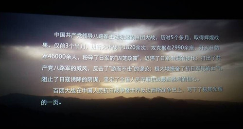 影片通过描述八路军在武乡关家垴、平定娘子关、黎城黄崖洞兵工厂、晋西北西营坞、道路破拆战等地方的英勇作战,突显出党领导人民军队和抗日民众在战争中英勇抗战的不屈精神,同学们十分的专注,仿佛跨越时空亲眼目睹了那残酷的战场。