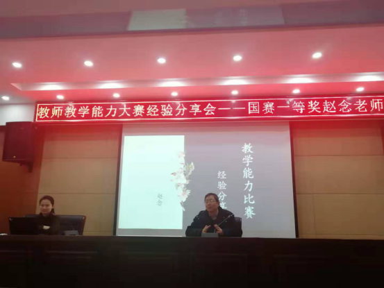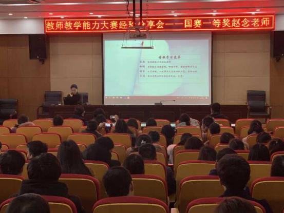 3月9日下午,学校邀请2018年全国教师教学能力大赛教学设计比赛一等奖获得者、国际商务职业技术学院教师赵念在南阶205教室给365官网老师们作了一场精彩的参赛经验分享报告。报告会由学校教务处组织,各系、部100多名中青年教师参加了经验分享报告。
