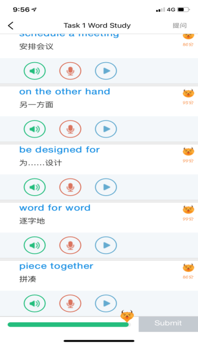 截至到目前为止,《实用英语》已在线直播了3次课,并进行了3次速课的录制,并按课程时间向全校学生开放。课程在直播课程中,《实用英语》教学团队首先对课前观看视频、知识点以及口语实训的学习进行总结并点评。然后对课本的知识点进行讲解的同时,还有优秀教师对学生进行答疑解惑。课程结束后,在学习通布置相应的讨论和作业,检查学生是否认真听课。教师检查本班级的完成情况,并对各班出现的问题针对性解决。在每周网络课程结束之后,教师团队在网络群中对直播中出现的问题进行探讨并提出解决方案。在口语实训课程中,教师主要针对学生后台出现比较多的语音错误情况,在课程中进行语音纠正,并对个别语音错误比较严重的同学进行单独连线。