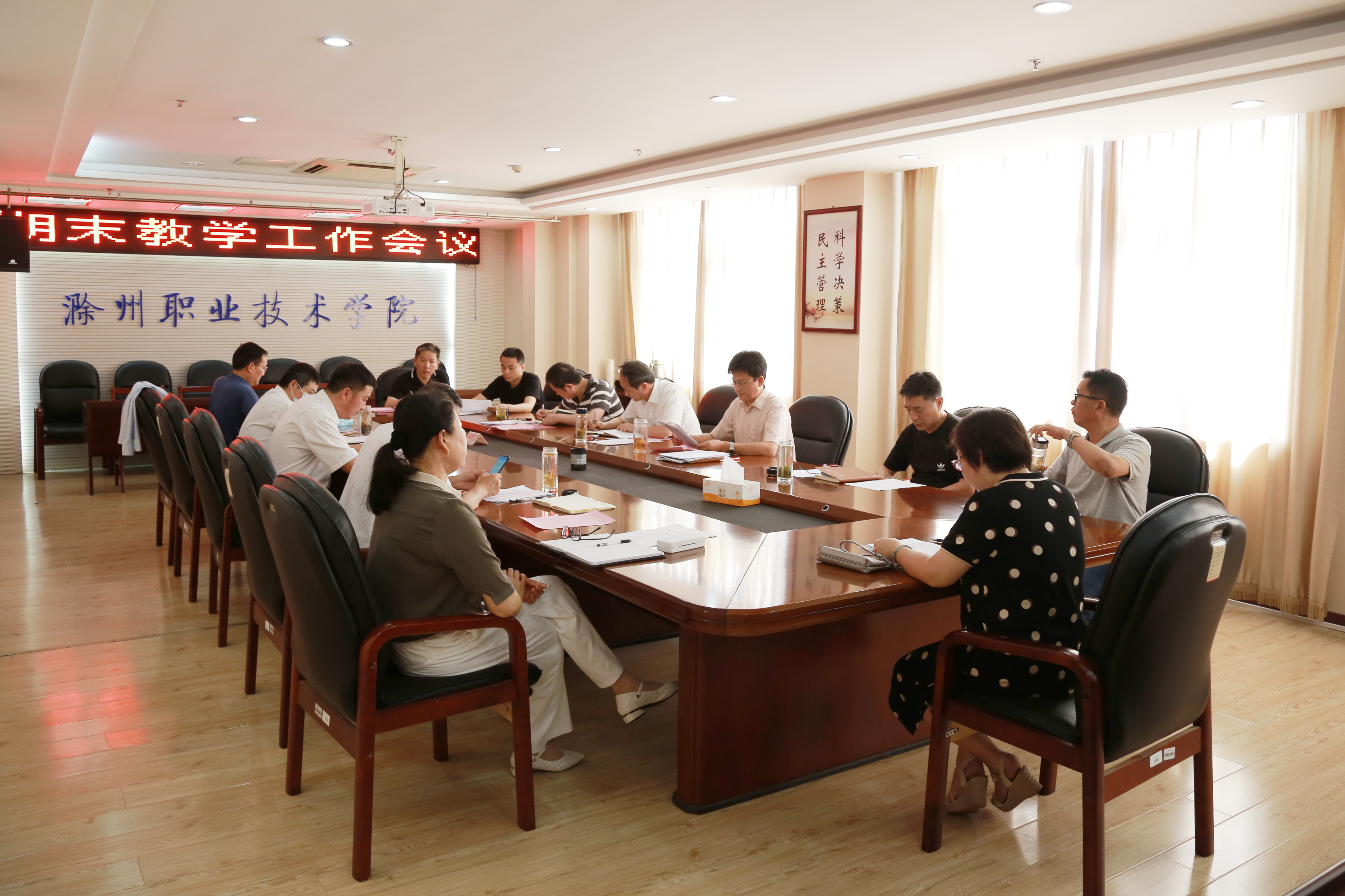 苏有良也对本学期教学管理工作做了充分肯定;对本次调查问卷中发现的问题提出要求;对“安徽省教育厅关于初中起点五年制高职教育人才培养质量核查工作”做出强调,一是高度重视,认真准备;二是细化工作,全程梳理;三是要对照要求、自查自纠;四是要凝练特色、争取优秀。