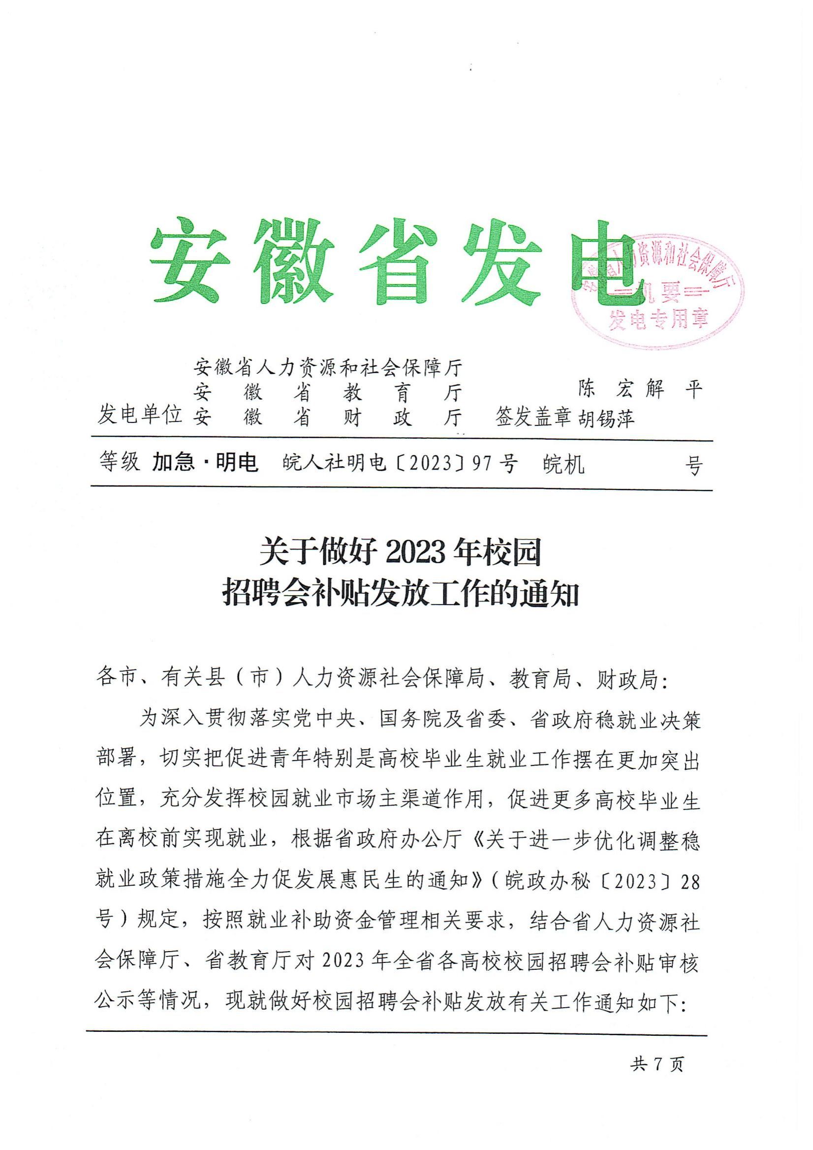 近期,根据《安徽省人力资源和社会保障厅 安徽省教育厅 安徽省财政厅关于做好2023年校园招聘会补贴发放工作的通知》(皖人社明电〔2023〕97号)要求,省人力资源社会保障厅、省教育厅、省财政厅对2023 年全省各高校校园招聘会给予补贴,365官网2023届毕业生签订劳动合同与就业协议就业人数为5210人,全省115所高校中名列前六,获省厅奖励31万余元。365官网2023届毕业生就业工作有序推进,主要从以下六各方面开展: