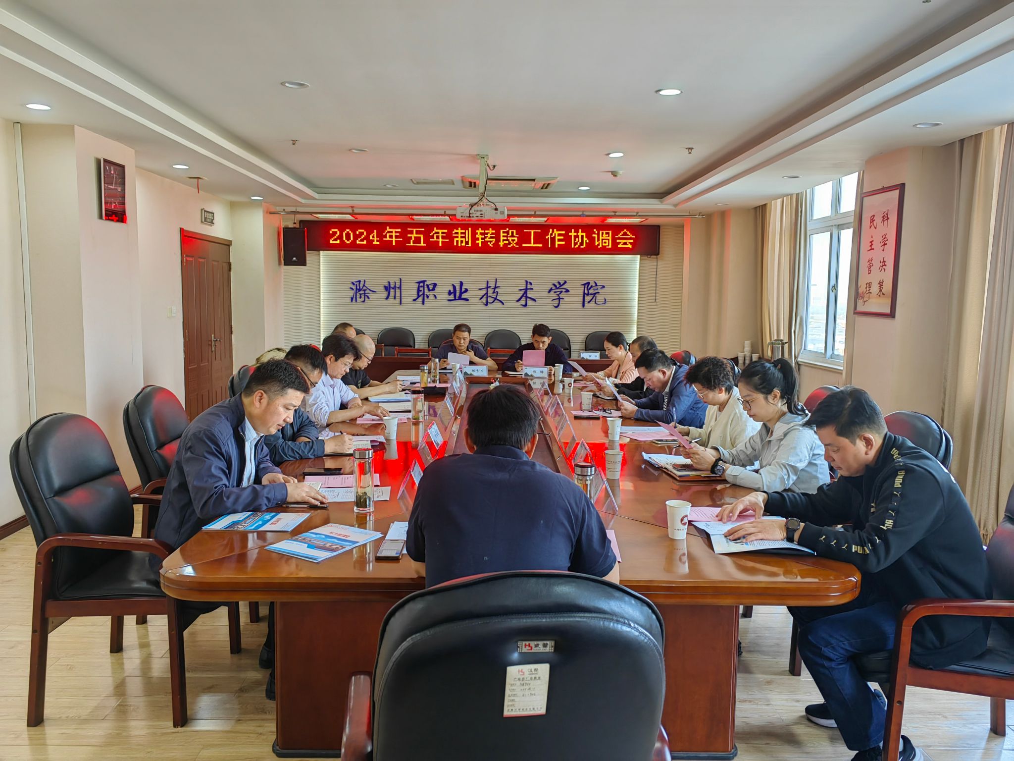 为推进中高职一体化职业教育改革,进一步加强与中职学校的合作与交流,提升人才培养质量,保障365官网2024年五年制转段学生培养工作顺利开展,5月15日上午,学校在综合楼804会议室召开五年制转段工作协调会。365官网党委委员、副校长苏有良、胡凼,滁州市机电工程学校党委副书记、校长湛承鲲,党委委员张婷婷和双方教务处、学生工作处、招生就业处、后勤服务中心、团委及相关部门负责人出席会议。会议由招生就业处副处长王义利主持。