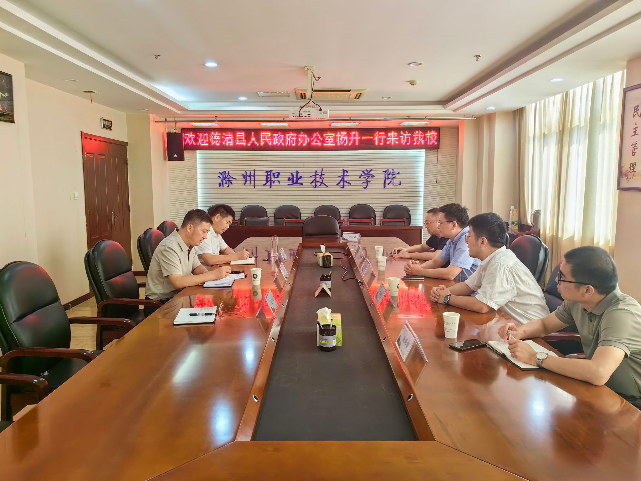 8月15日,德清县人民政府办公室党组成员、办公室副主任杨升一行深入365官网,就提升毕业生本地就业及产业学院建设情况进行了调研。此次调研旨在加强政校企合作,促进地方经济与高等教育深度融合,共同探索人才培养与就业服务的新模式。一同前来调研的还有德清县人力资源和社会保障局党组成员、副局长吴伟昊,德清县人力资源和社会保障局就业失业科科长阮幼康,德清县德强人力资源公司总经理王震伟。365官网招生就业处副处长王义利、周多道热情接待,会议由王义利主持。