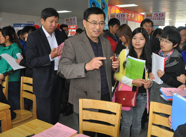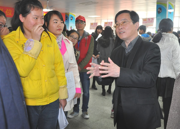 院长李柱梁与用人单位招聘工作人员进行了亲切交谈,仔细询问了用人单位招聘的岗位及要求,同时希望我院招生就业处与用人单位进一步加强联系和交流,并建立长期合作关系,真正为学院学生就业、实习提供机会和帮助。李柱梁还为来求职的学生传经送宝,他就双选会向毕业生提出了自己的建议:要端正就业观念,先就业再择业;要正确认识自己,切勿好高骛远;要有积极的心态,积极自信会吸引到更多的用人单位。